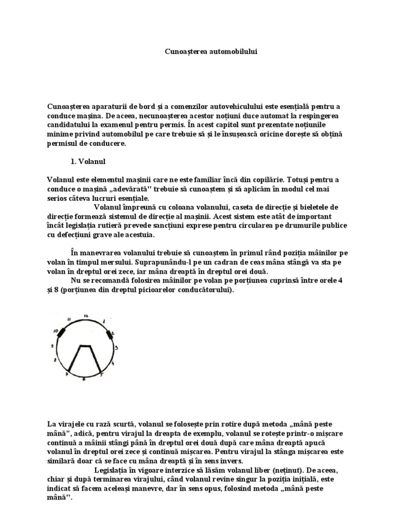 Cunoasterea aparaturii de bord si a comenzilor. Turometrul indică numărul de rotații pe minut ale arborelui cotit al motorului. în timpul probei practice de conducere în traseu a autovehiculului examinatorii vor urmãri. A pregãtirea pentru drum pozitia la volan cunoasterea aparaturii de bord. Verificarea autovehiculului directie sistem de frânare pneuri instalatii de iluminare semnalizare avertizare si stergãtoare de parbriz.