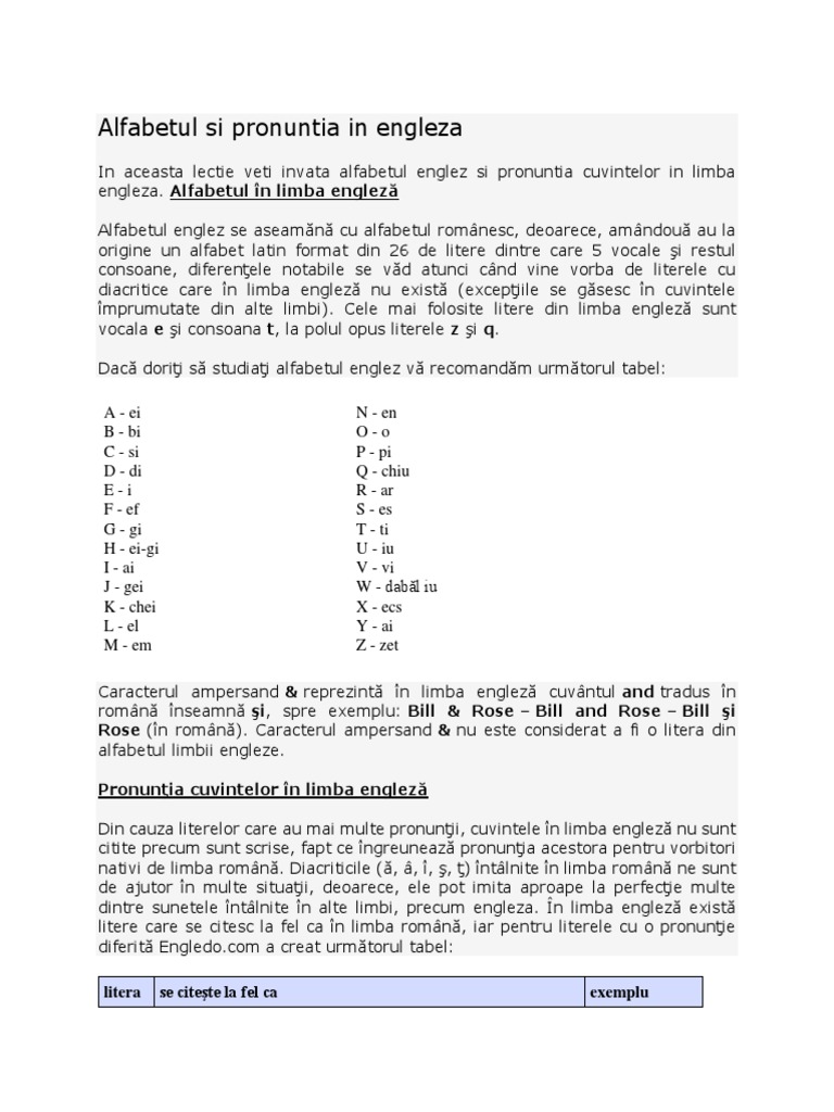 Alfabetul Si Pronuntia In Engleza