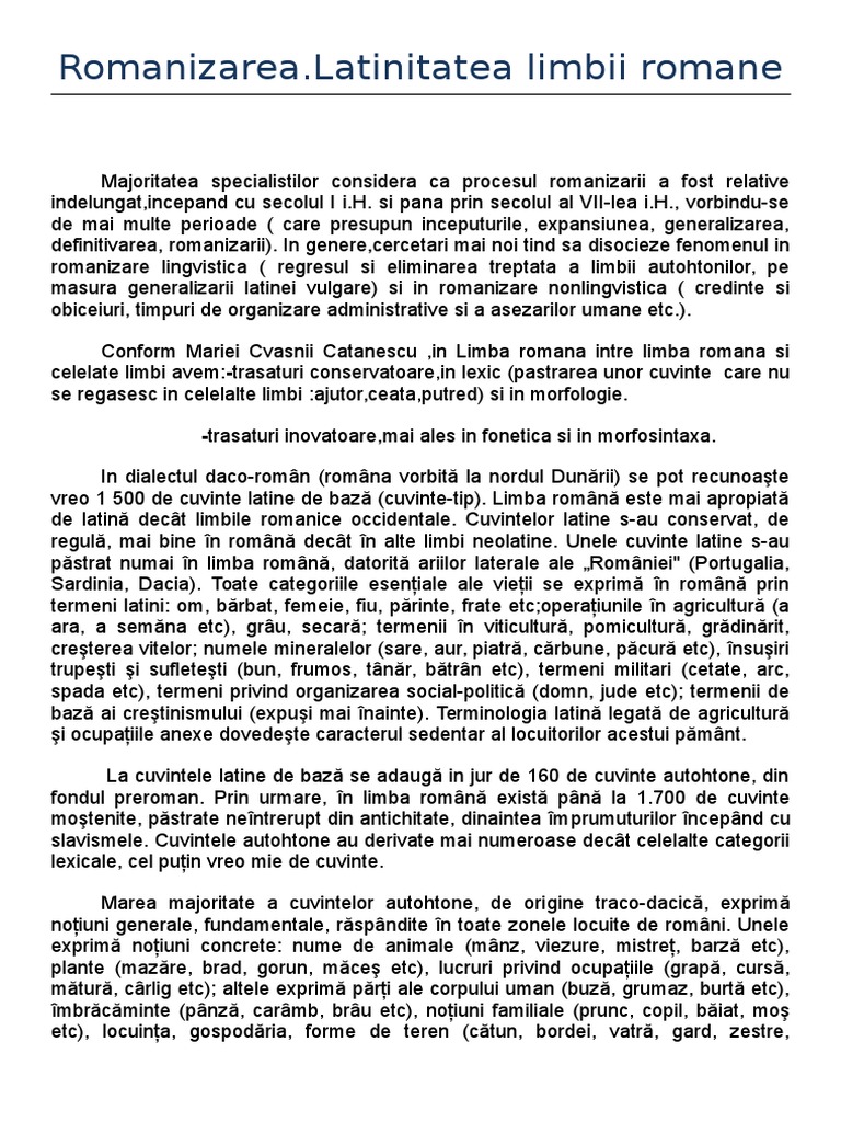 Romanizarea Latinitatea Limbii Romane