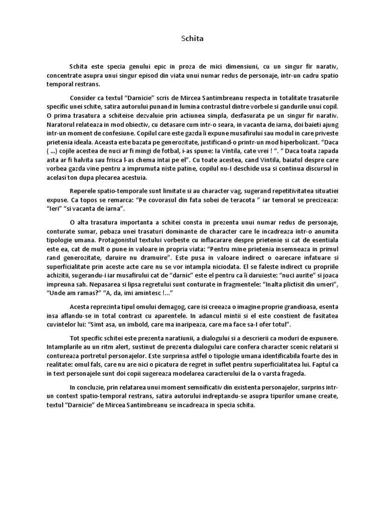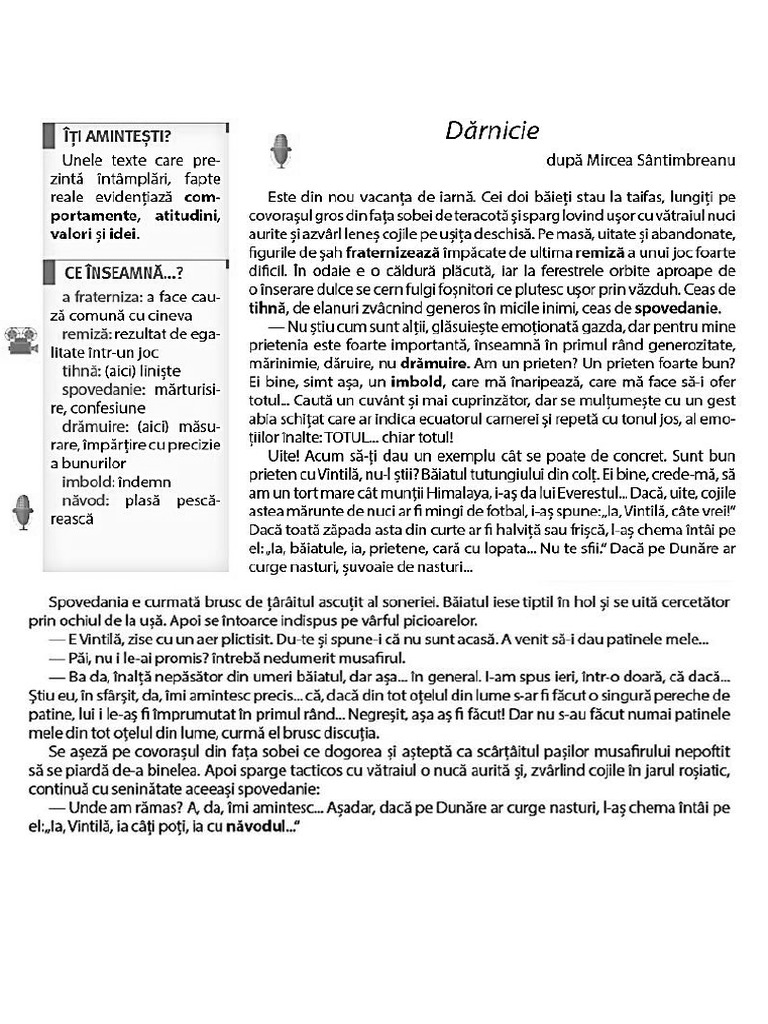 Dărnicie de mircea sântimbreanu comentariu literar rezumat literar literatură dărnicie de mircea sântimbreanu este o schiţă care face parte din volumul recreaţia mare a cărui primă ediţie a fost publicată în 1965 la bucureşti. Darnicie vacanta de iarna. Era de fapt primul punct marcat. Pe masă abandonate figurile de șah fraternizează împăcate de ultima remiză a unui joc foarte dificil.