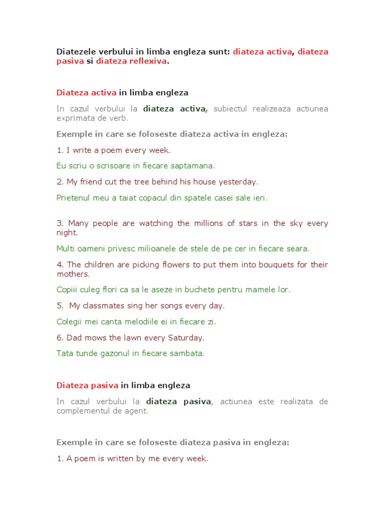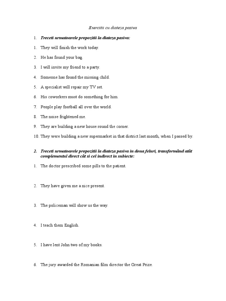 February 6 2017 at 1 05 pm multumim. Diateza pasiva in englezacum se identifica actiune este realizata de subiectul logic complementul de agent exemple i have seen a tree. Traducerea se face cu a fi de. Diateza pasiva in engleza exercitii limba engleza gramatica limbii engleze verbul in engleza diateza pasiva a verbelor in limba engleza.
