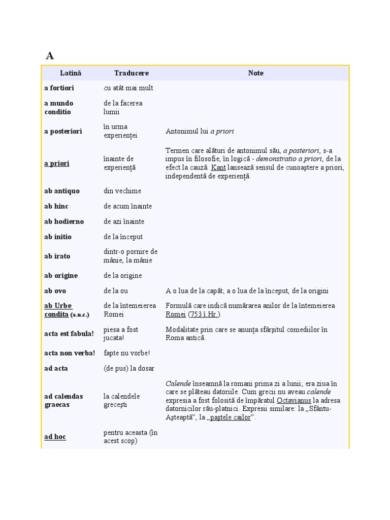 Dictionar de expresii latine. Pagina principală dicţionar latin român. Cine da un diagnostic bun vindeca bine bona diagnosis bona curatio. De la verbul latin ago agere egi actum. Ab love principium sa incepem cu jupter sa incepem cu lucrul cel mai important sau cu persoana cea mai importanta ab intestat fara testament.