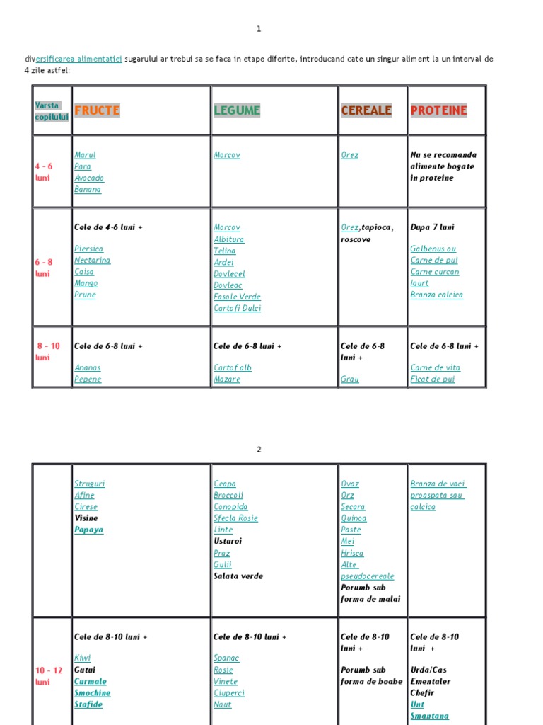 Schema De Diversificare A Alimentaţiei Bebelusului