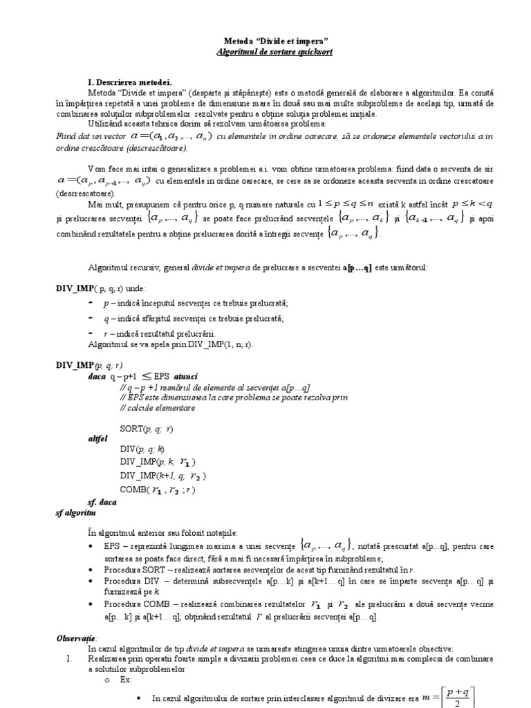 Void mergesort int i int m int j int b 20 x i k 1 y m 1. Metoda divide et impera puşi în faţa unei probleme pentru care trebuie să elaborăm un algoritm de multe ori nu ştim cum să începem. Sortarea prin interclasare merge sort utilizand metoda divide et impera sa se sorteze prin interclasare un sir. Problemele de la divide et impera vor fi rezolvate prin 2 metode.