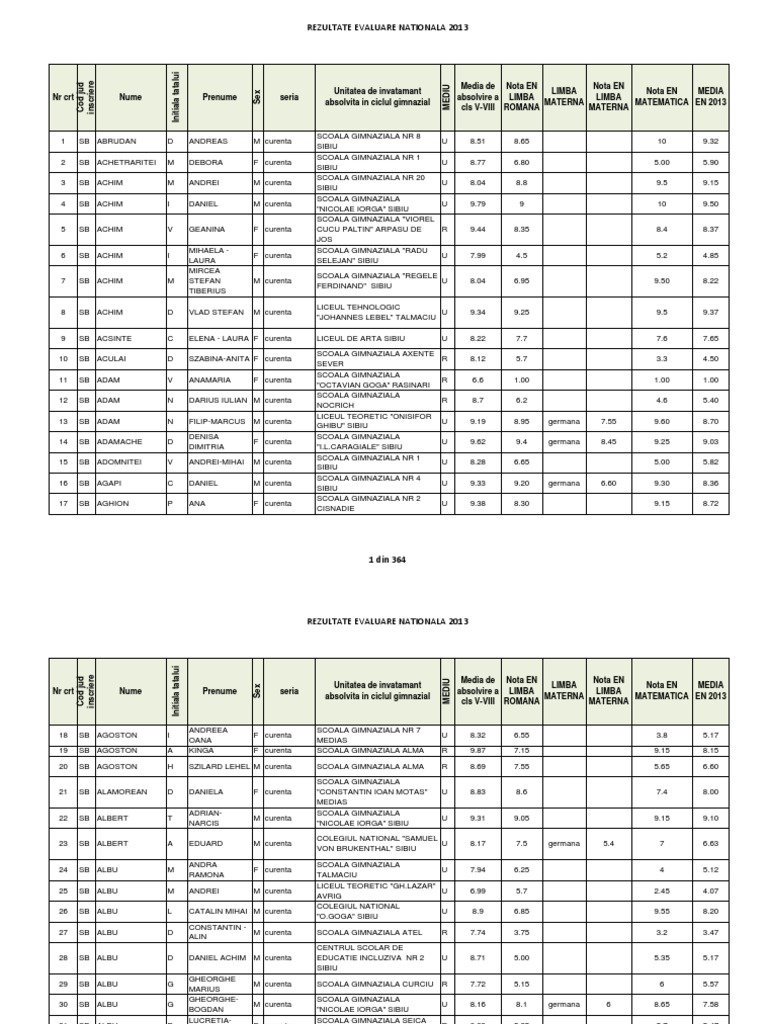 Update Rezultate Evaluare Naţională 2013 Călărasi A Fost Publicată Ierarhia Pentru Admiterea La Liceu 5 Elevi Au Obţinut Nota 10